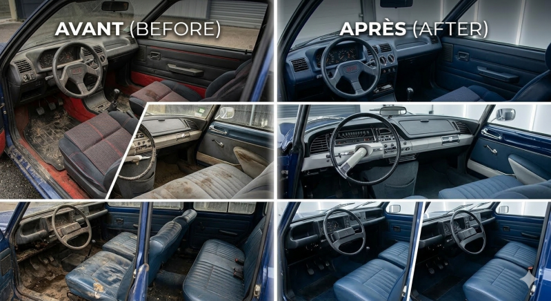 Explorez notre galerie de projets "avant/après" et constatez la différence. Chaque image témoigne de notre engagement à redonner à votre voiture son éclat d'antan, particulièrement son intérieur.